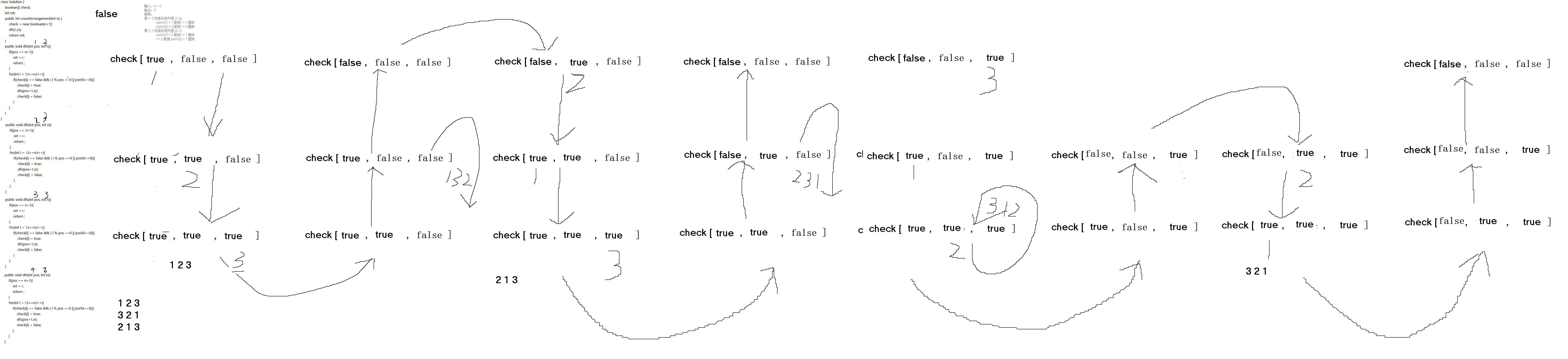 我们需要在每一个位置上考虑所有的可能情况并且不能出现重复。通过深度优先搜索的方式,不断地枚举每个数在当前位置的可能性,并回溯到上一个状态,直到枚举完所有可能性,得到正确的结果。我们需要定义一个变量 用来记录所有可能的排列数量,一个一维数组 visited 标记元素,然后从第一个位置开始进行递归;