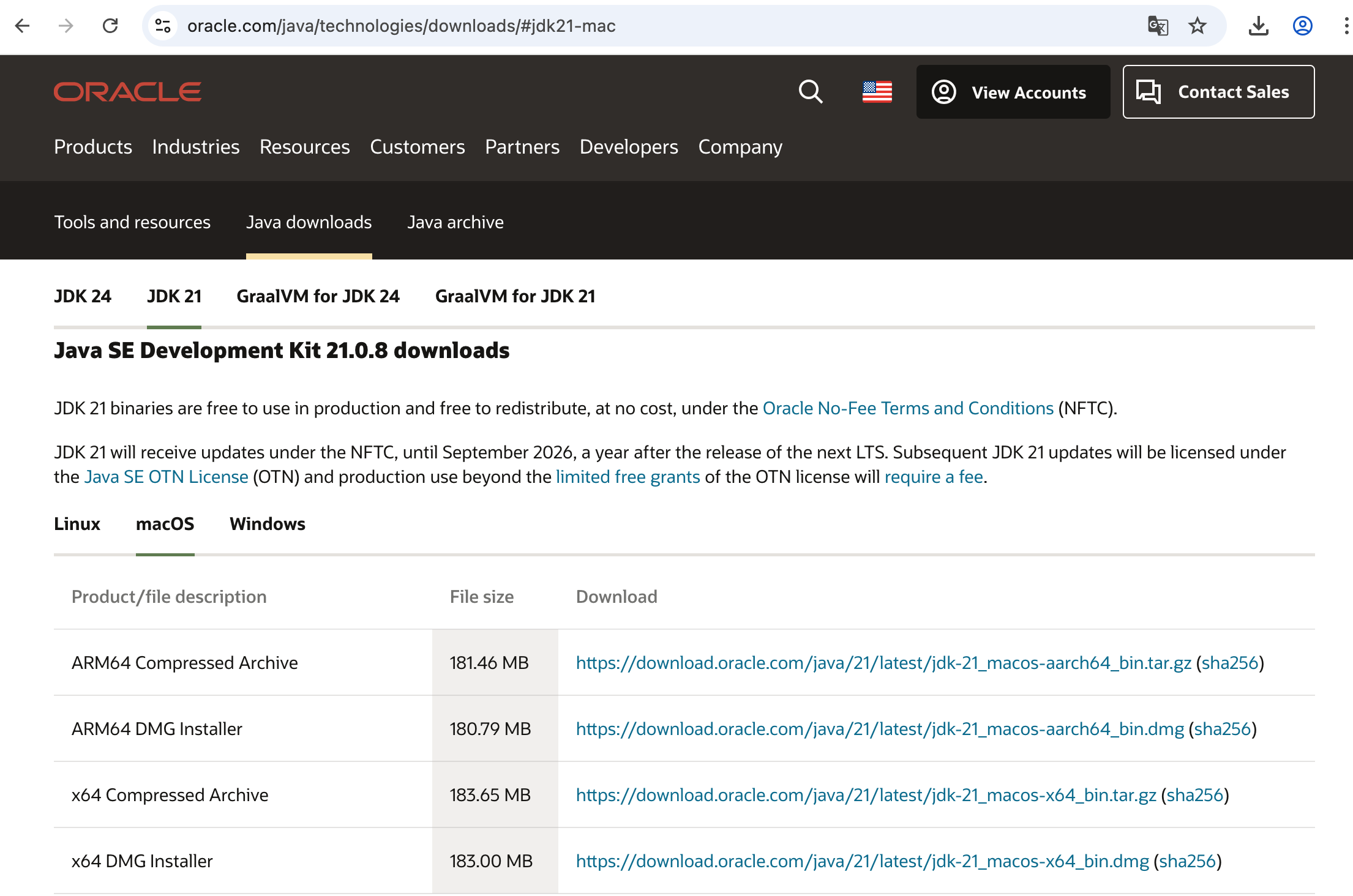 21.0.8 (x86_64) "Oracle Corporation" - "Java SE 21.0.8" /Library/Java/JavaVirtualMachines/jdk-21.jdk/Contents/Home