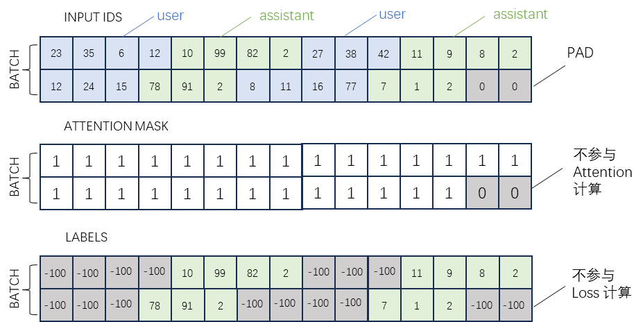 - 以 user 和 assistant 标识出用户输入与系统回复