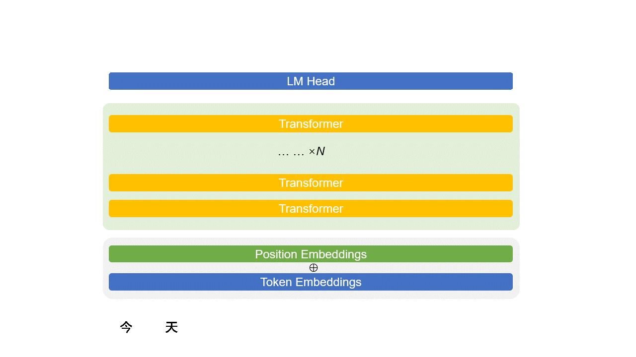 或者说,一个 LLM 就是一个 N N N 层 Transformer 网络,例如 GPT-3.5 是 96 层。