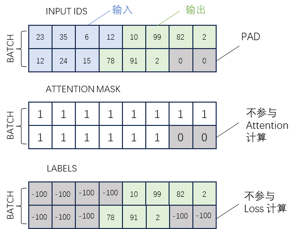 - 加载预训练 Tokenizer:AutoTokenizer.from_pretrained(MODEL_NAME_OR_PATH)
