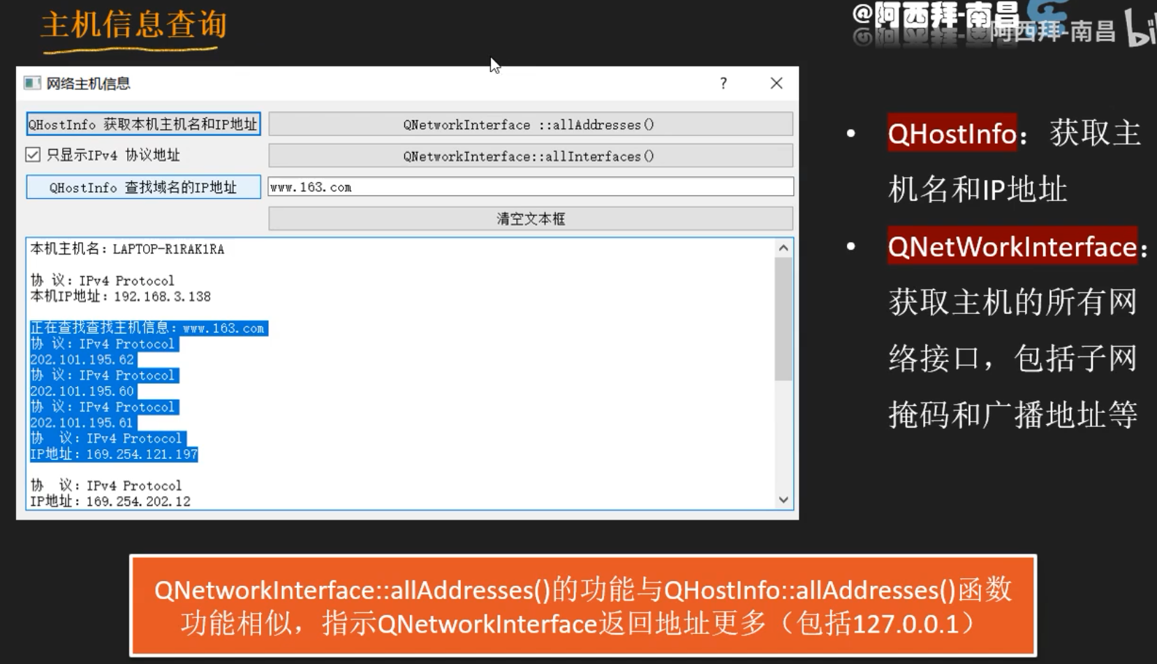 QList<QHostAddress> addList=host.addresses();//查找主机信息
