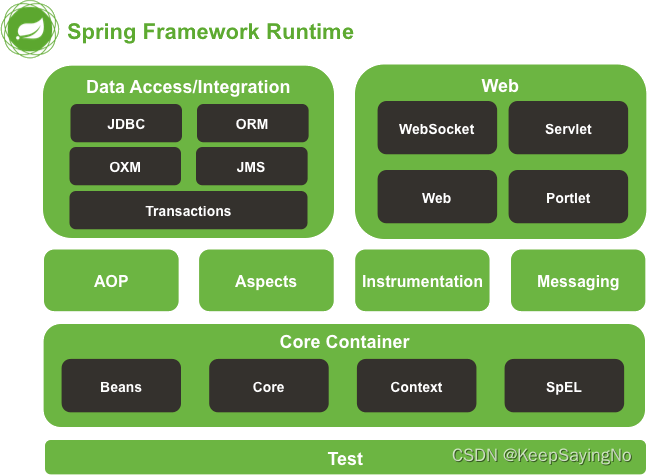 下面这张图是我最喜欢看的一张图,也是对Spring体系结构描述最准确的一张图,大家学习Spring了解最多的可能是IOC、DI、AOP这些名词,其实Spring还有一个很强大的组件就是Spring Data。