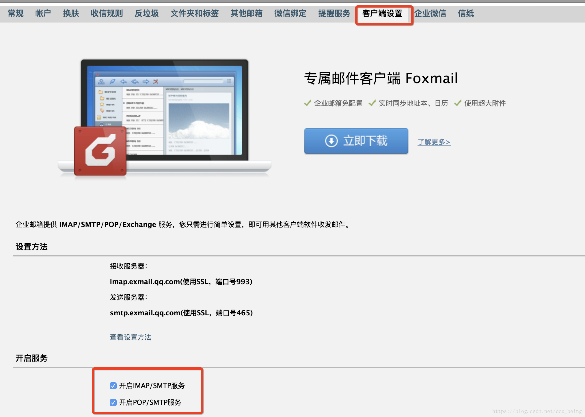 2.确保腾讯企业邮箱中开启了SMTP服务: