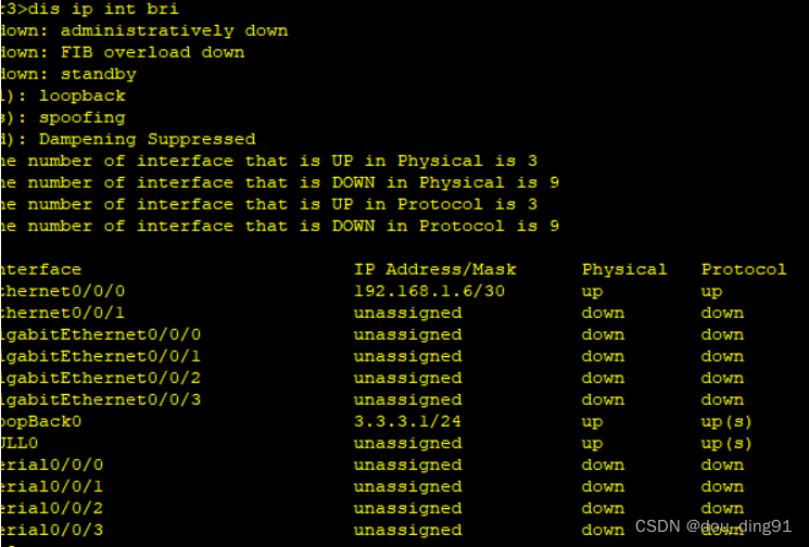 其中把192.168.1.0/26 将其用来设为骨干取用划分的192.168.1.0/30 192.168.1.4/30