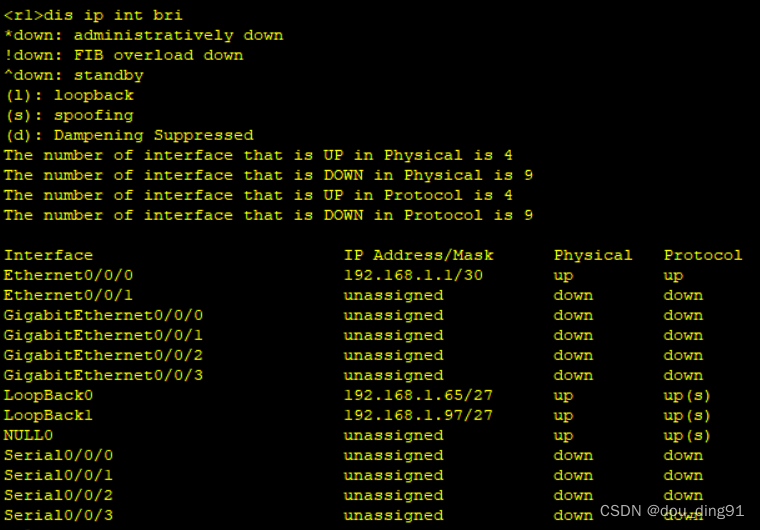 192.168.1.64/26分配给R1的2个环回 192.168.1.64/27 192.168.1.96/27