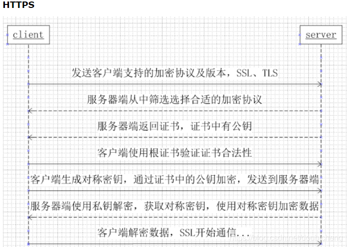 客户端接收后会验证证书的安全性,如果通过则会随机生成一个随机数,用公钥对其加密,发送到服务端