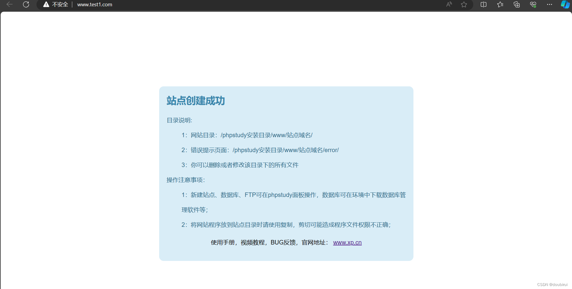 4.之后点击管理—打开网站,若页面显示如图,则创建网站成功。