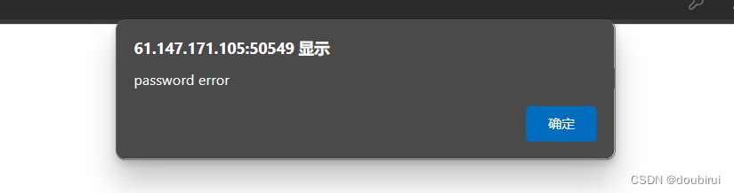 1.该网页让我们输入用户名和密码,我们随即输入后,弹出窗口让我们以”admin“作为用户名。我们再用admin作为用户名在输入一遍,弹出窗口说我们密码错误。