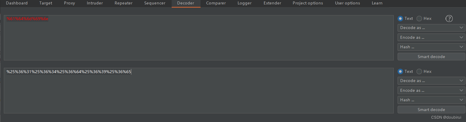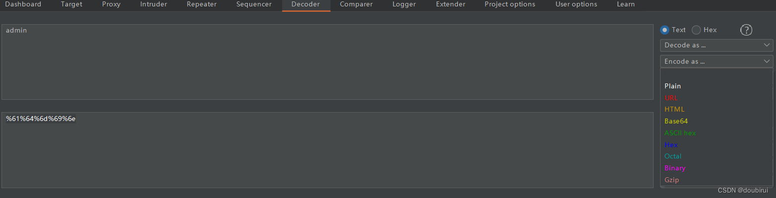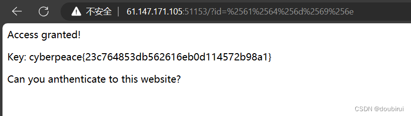在所给的php代码中,unldecode()函数用于解码传递的“id”参数的url编码值,以便后续判断“id”参数的值是否等于“admin”。因此我们要对“admin”进行url解码,得到:%61%64%6d%69%6e。又因为浏览器本身会进行一次url解码,所以我们其实需要进行两次url解码,即%61%64%6d%69%6e在进行一次url编码,得到%25%36%31%25%36%34%25%36%64%25%36%39%25%36%65。