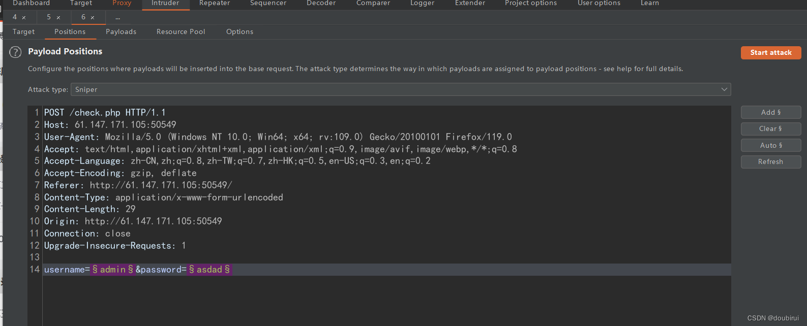1.进入页面后,我们可以发现网址后缀为/1.php,但根据我们所熟知的,一般都为/index.php,再结合题目所给的web,我们可以猜测这道题需要进行burp抓包。