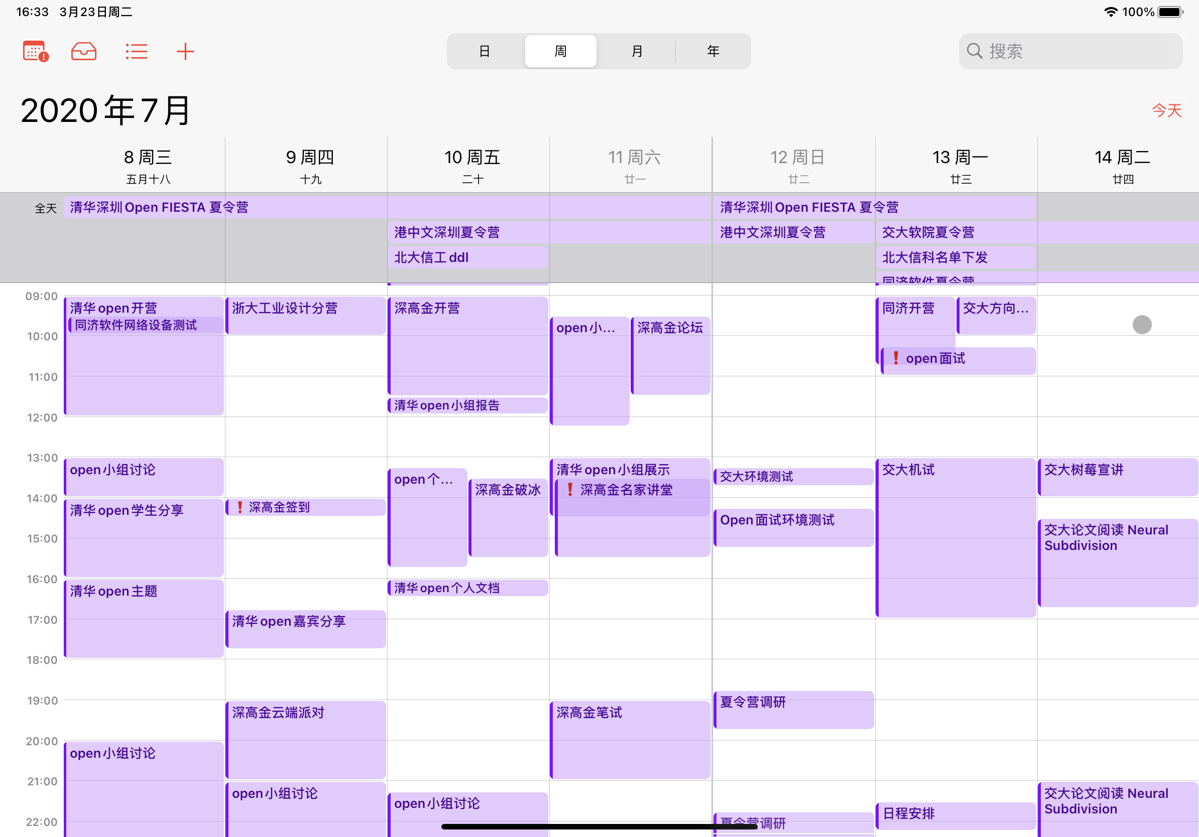 随便在7月份截了张保研每天的安排,这还没算期末项目的答辩、实习的培训、殷夫班的任务…