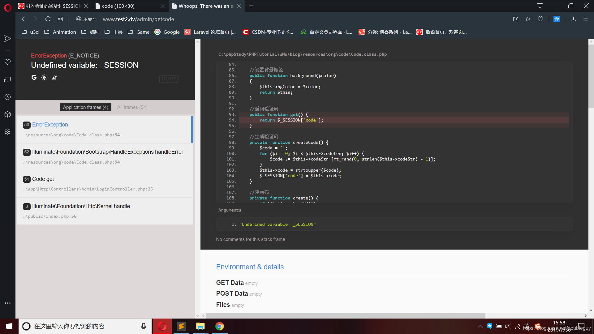问题描述:laravel写项目时,导入外部验证码类,并调用其生成的验证码(其验证码已经用session存储起来)时报如题的错误。