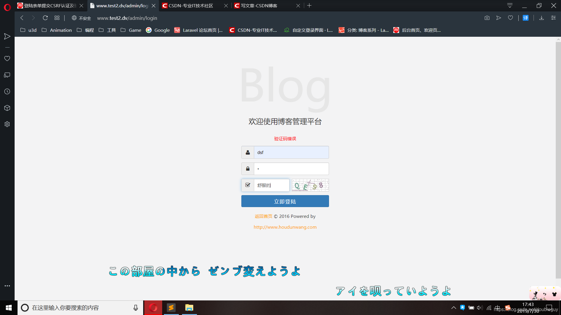 先获取验证码,然后把得到的用户输入的验证码都转换成大写(我这里的验证码都是大写,为了让用户不管输入小写还是大写都能验证)。用if判断是否匹配,如果不匹配,则用back函数(laravel的函数,可以把数据返回到本页面)传递错误参数(该参数存储在session中,在login.blade.php中可以用session来接收该参数)到本页面。