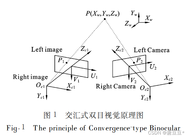 P1和P2分别为左相机和右相机拍摄的P点成像结果。