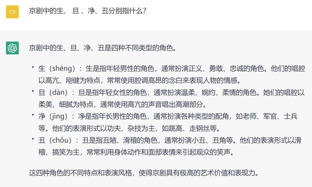 提问:京剧中的生、 旦 、净、丑分别指什么?