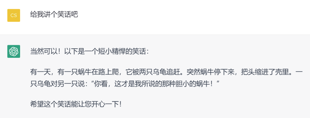 ……怎么说呢,「文心一言」和 ChatGPT 可能都不擅长讲笑话,都不是很好笑。