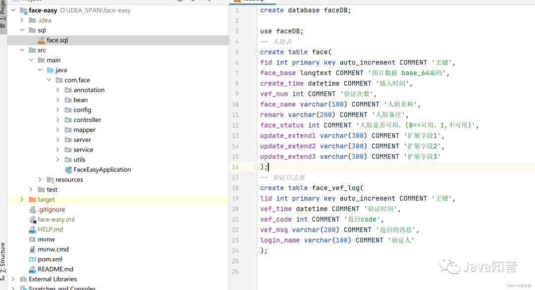 gitee后端项目:https://gitee.com/susantyp/face-easy