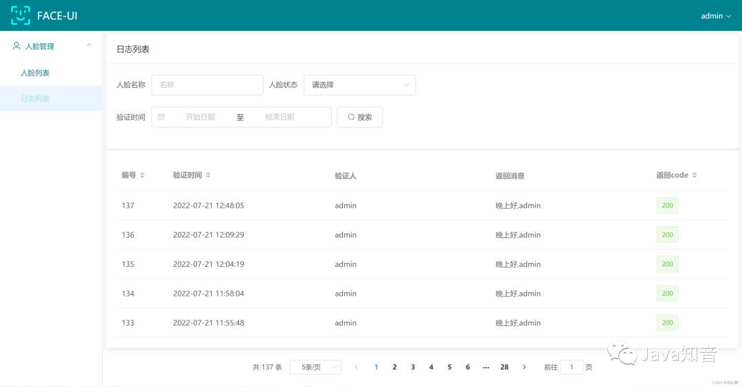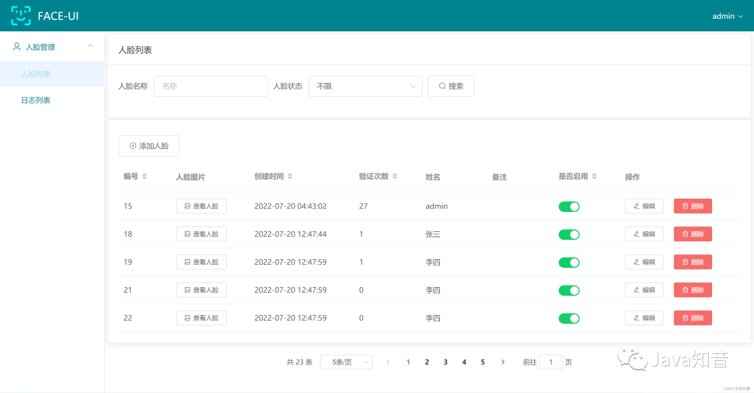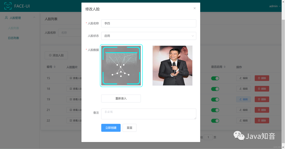 技术点:Springboot,Mysql,JWT,VUE 2.X 等等技术实现,主要功能点:人脸列表CRUD,日志列表CRUD,基于自建人脸库通过base64编码方式存储人脸图片,通过调用腾讯云人脸对比API场景实现