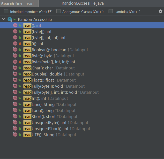 它的实现基于「文件指针」(一种游标或者指向隐含数组的索引),文件指针可以通过getFilePointer方法读取,也可以通过seek方法设置。