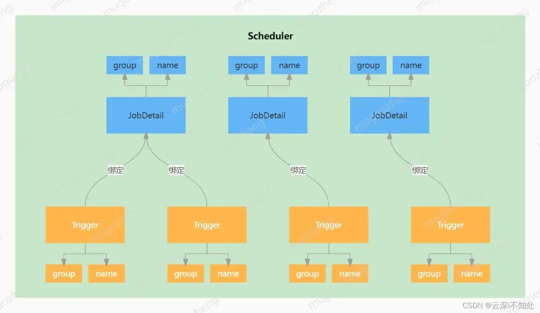 一个Scheduler可以调度多组JobDetail和Trigger。