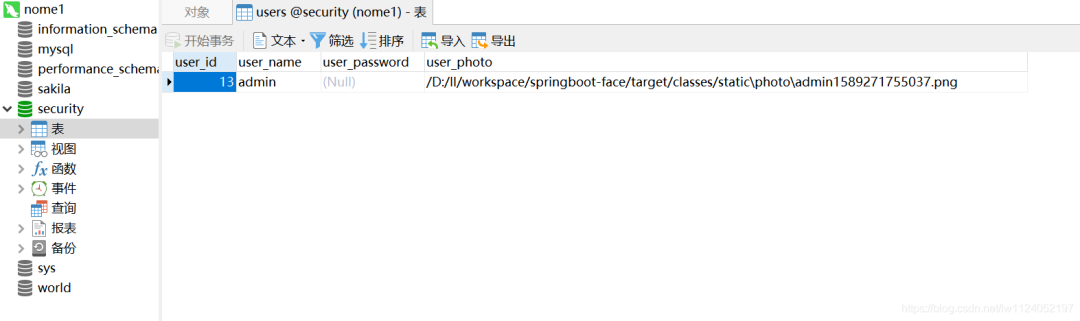 step3:将用户的注册信息写入数据库,用户的照片使用路径存储。