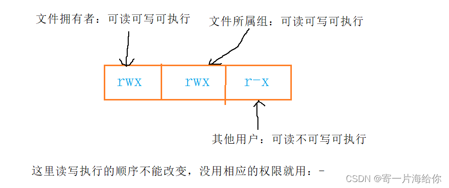 | rwx | 可读可写可执行 | --- | 无权限 |