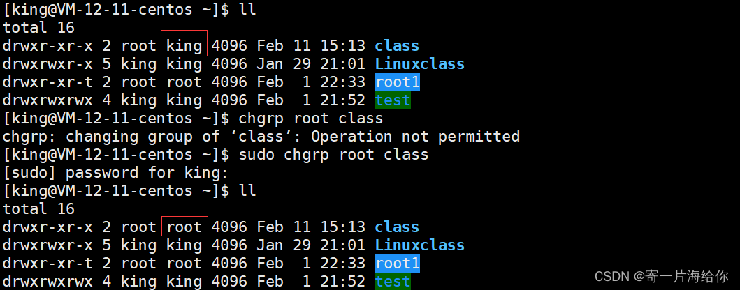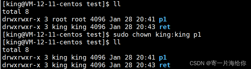 我们也可以更改文件的拥有者和所属组,这里不需要更改其他用户,因为文件拥有者和所属组的改变就会改变其他用户