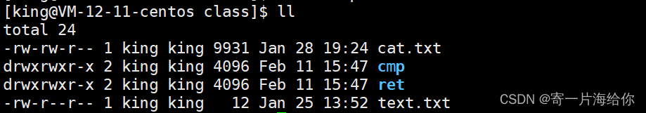 我们可以发现,两个普通文件访问权限都是一样的,两个目录文件的访问权限也是一样的