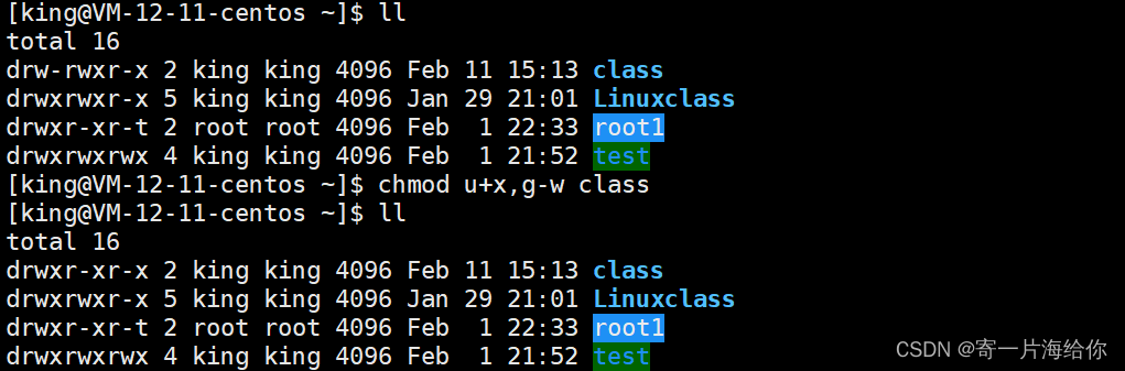 [king@VM-12-11-centos class]$ umask #普通用户的权限掩码为0002