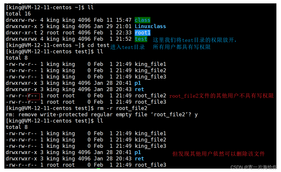 ❝那么问题来了,对一个目录的拥有者而言,允许其他用户在目录内创建修改文件,就需要该目录具有写权限 ,而一旦其他用户具有目录的写权限,就可以随意删除目录内的文件,不论该用户是否具有文件的写权限