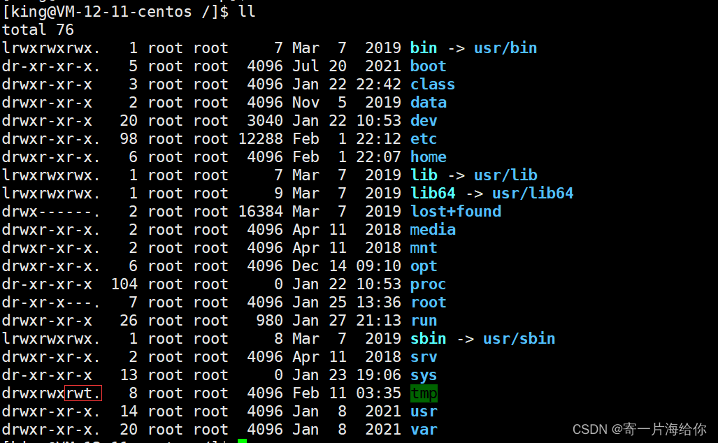 例如我们linux系统下,/目录下的tmp目录就设置了粘滞位,用来存放多用户的临时文件,用户可以更改自己的临时文件,而无法更改其他用户的临时文件