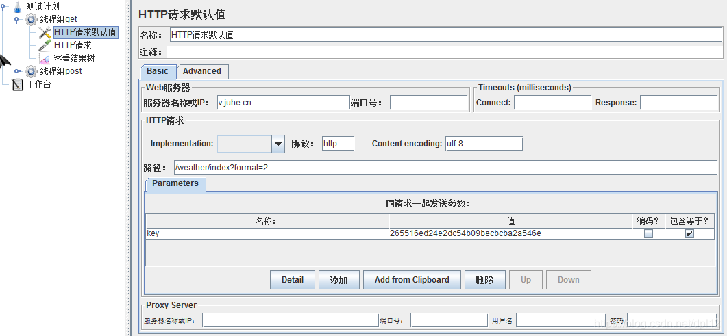 1、添加方式:线程组右键->配置原件->http请求默认值