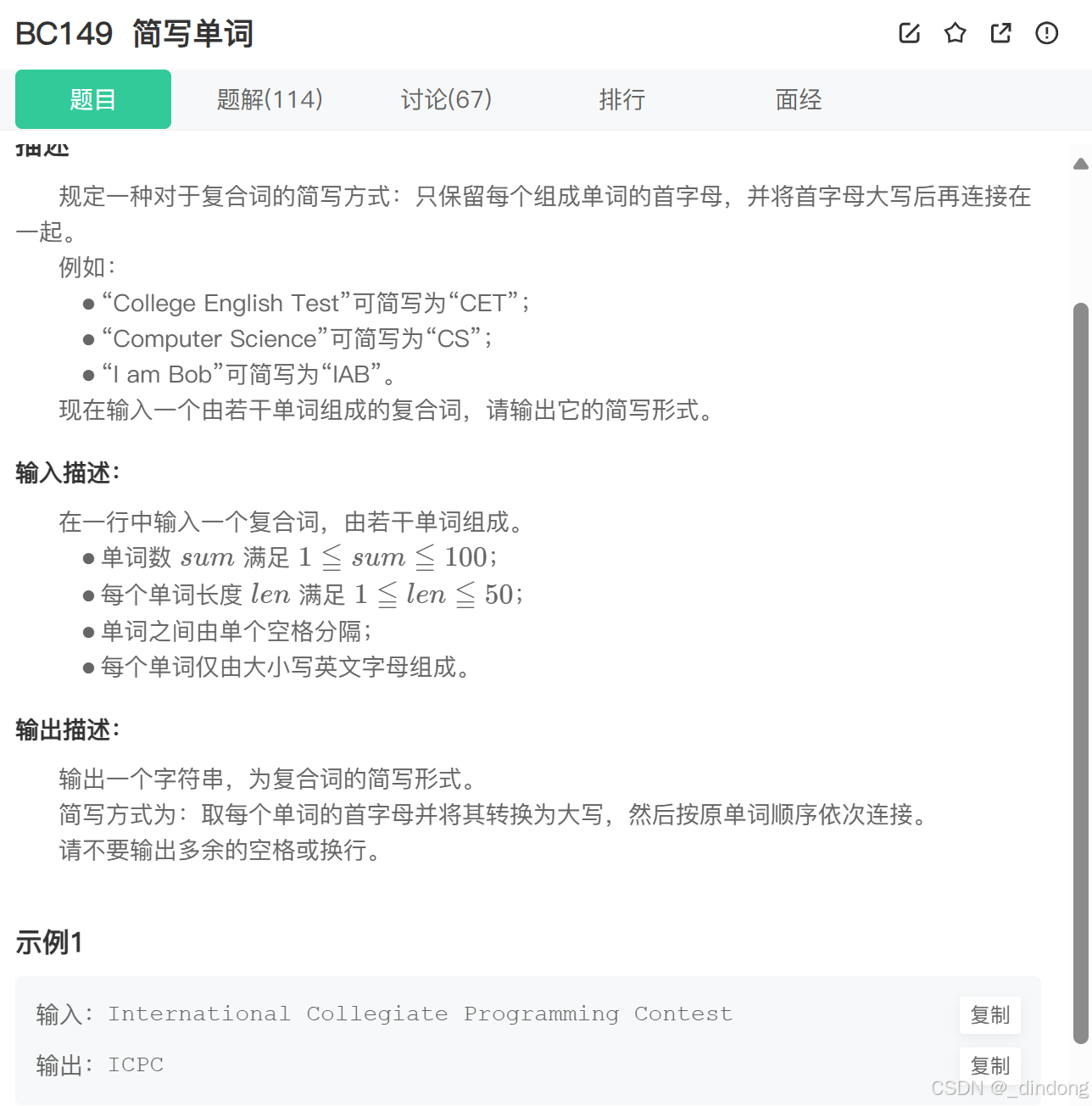 简单模拟题,主要是处理输入问题。通过while(cin>>s)可以帮助我们跳过空格