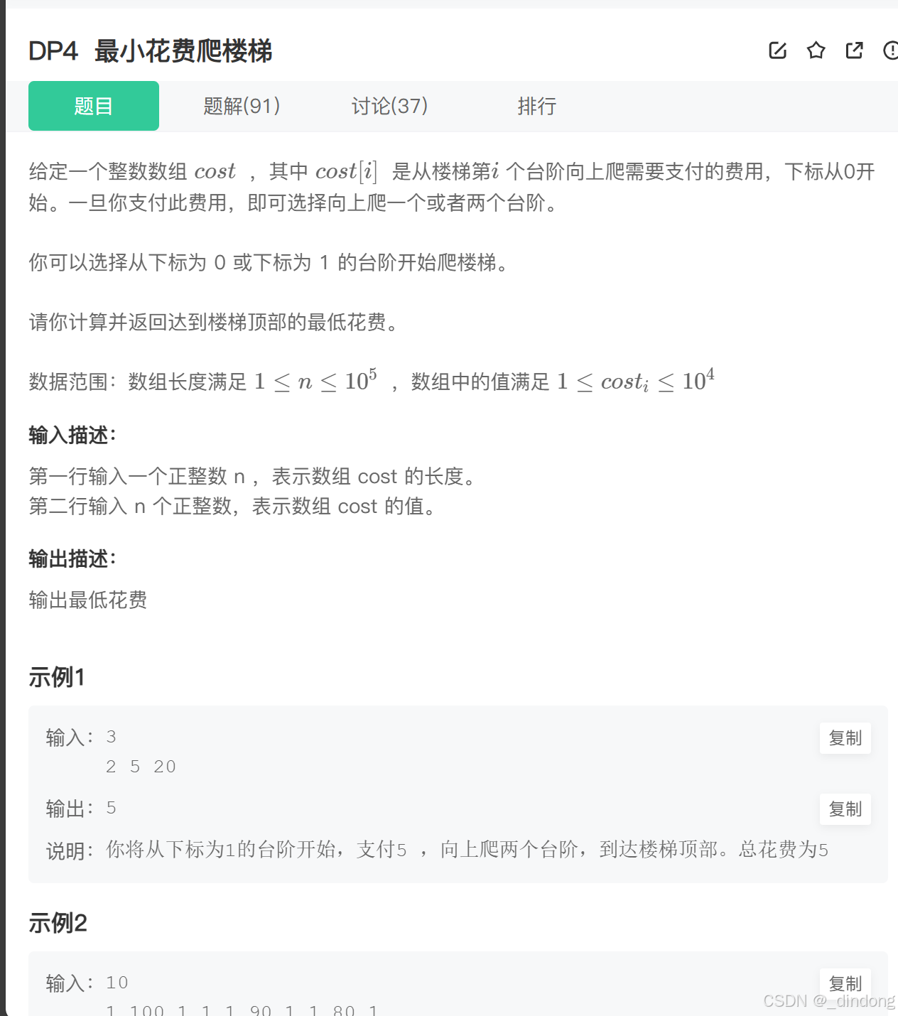 //dp[i]表示以i位置结尾时 所需要的最小花费