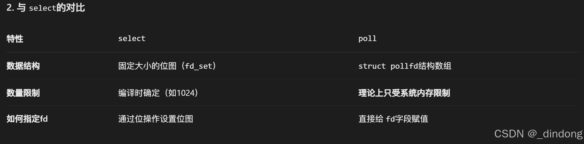 select的核心问题是使用固定大小的位图(fd_set),而 poll采用了完全不同的数据结构:一个由 struct pollfd组成的数组。