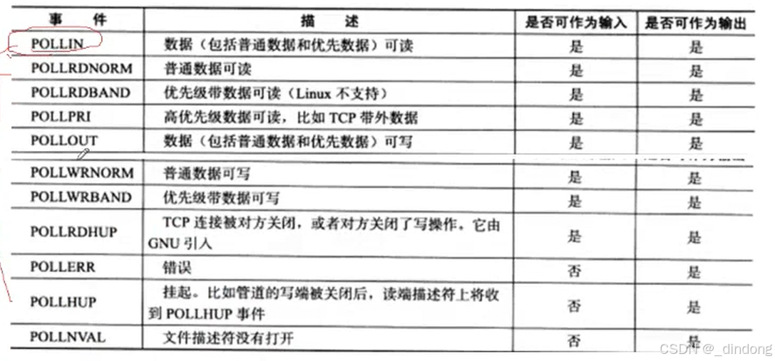 POLLIN:设置成这个,相当于select的可读文件描述符