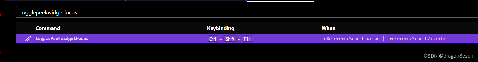 - 也可以配置 togglepeekwidgetfocus 为 ctrl + shift + F11 聚焦.