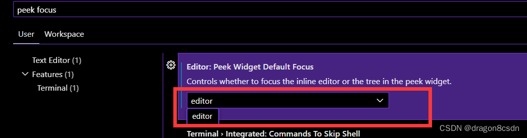 - 直接在 setting 中搜索 peek focus 设置为 editor 即可自动聚焦.