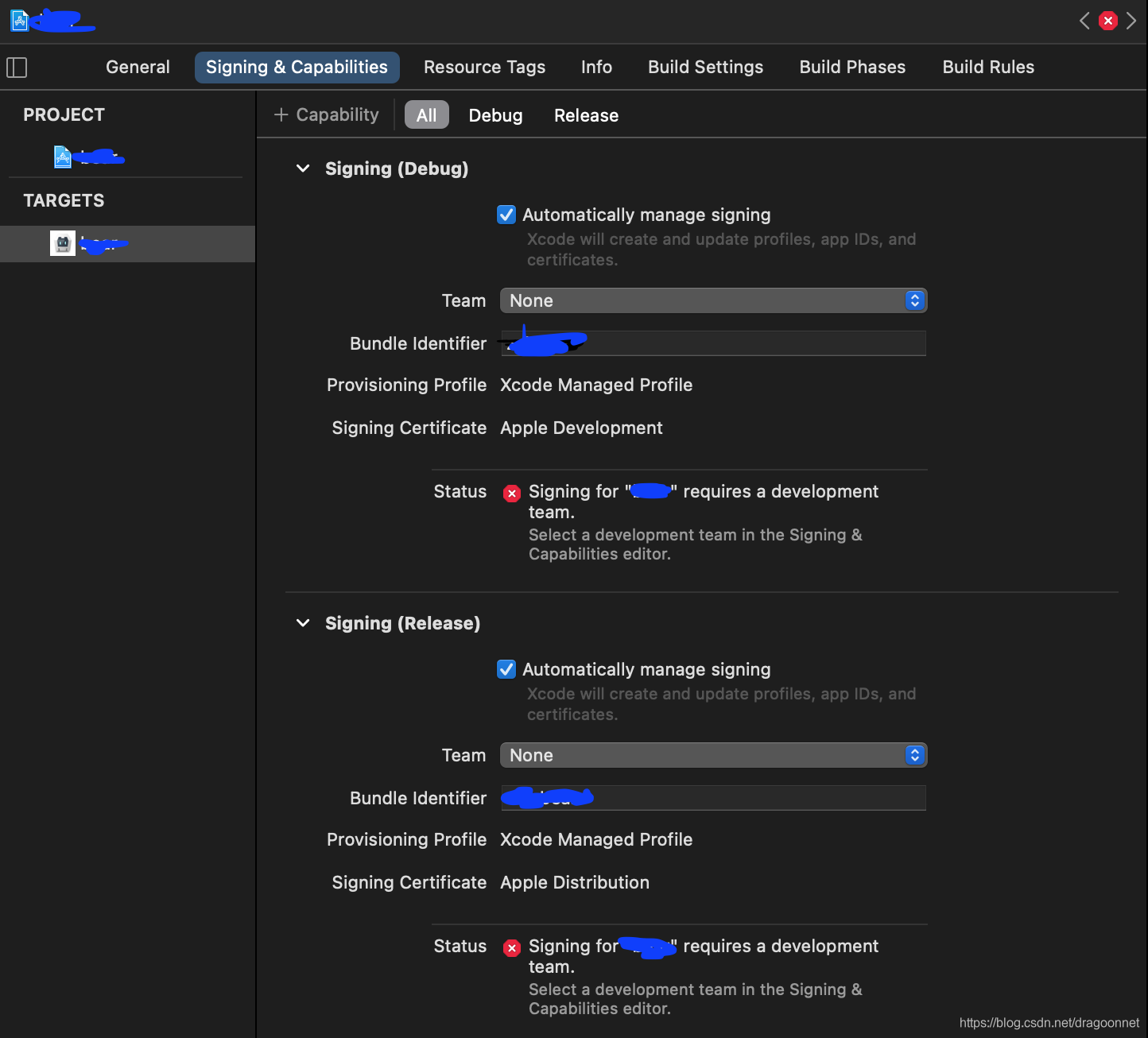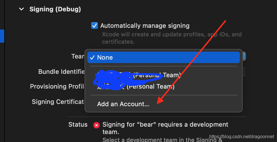 error: Signing for "XXXXXX" requires a development team. Select a development team in the Signing & Capabilities editor. (in target 'bear' from project 'XXXXXX')
