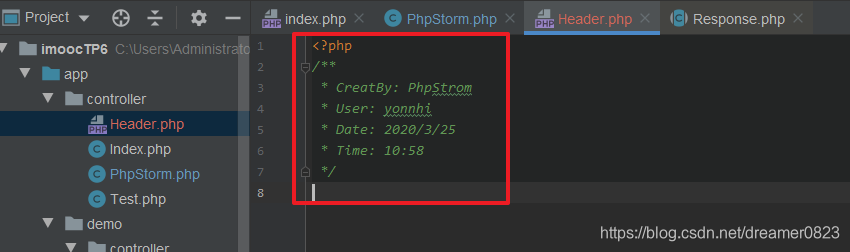 这样 我们在生成新的PHP文件的时候,就会自带这个头信息