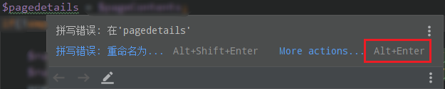 忽略某些单词的拼写错误的最优方式是,将鼠标移动到错误单词上,编辑器会自动提示让你按快捷键 Alt+Enter