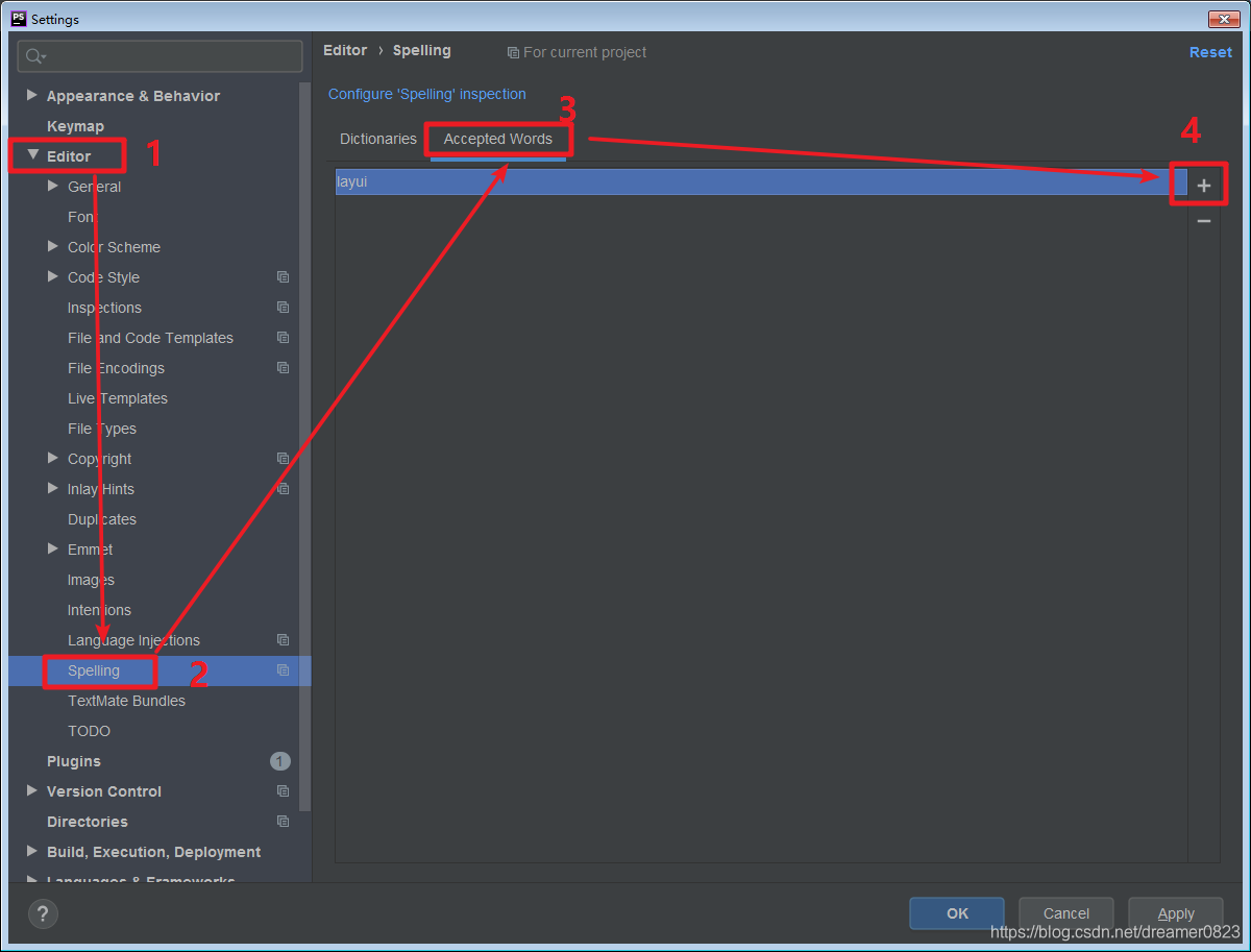 有时候经常会写一些非正规单词的单词,编辑器就会提示有误