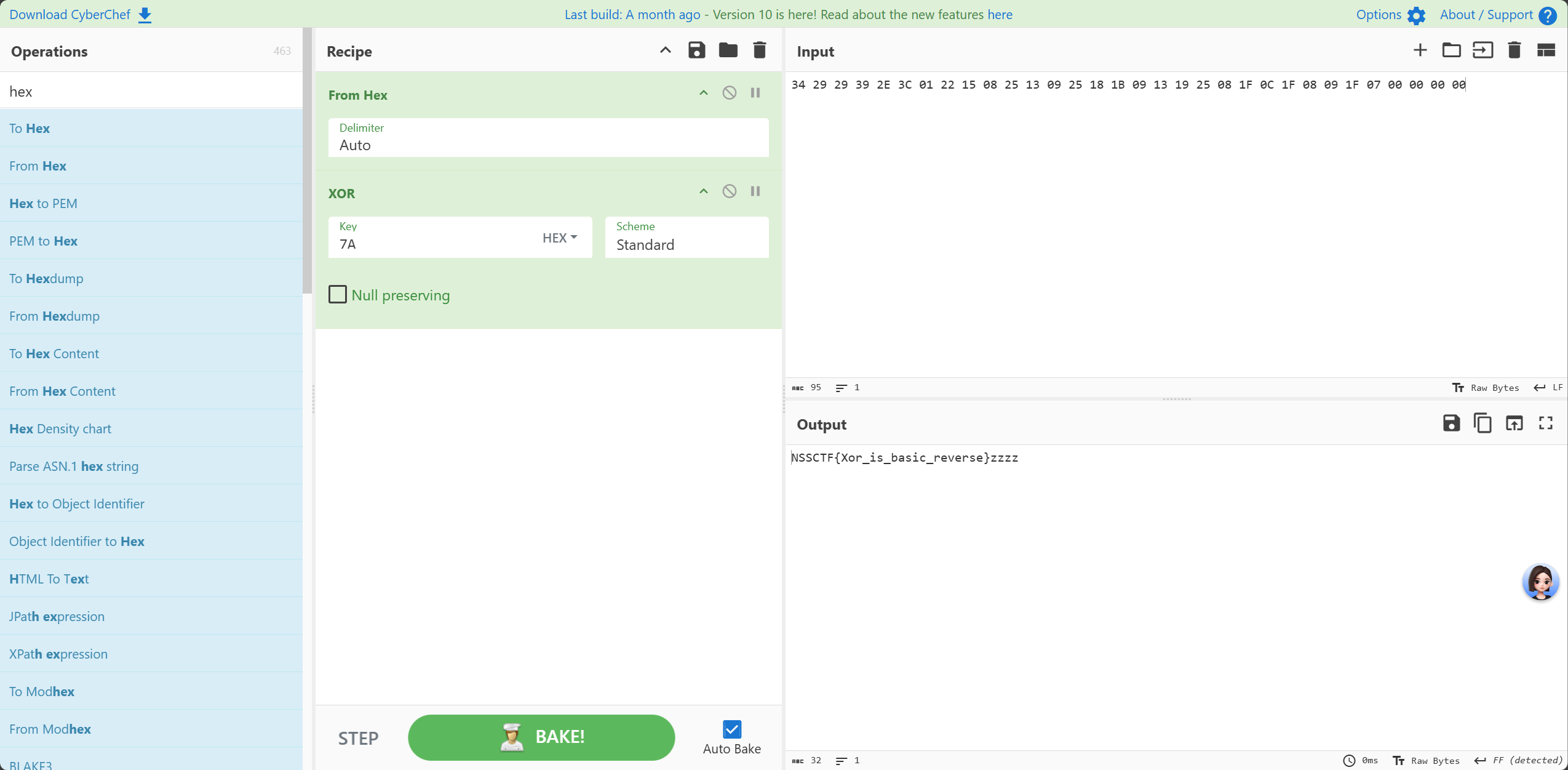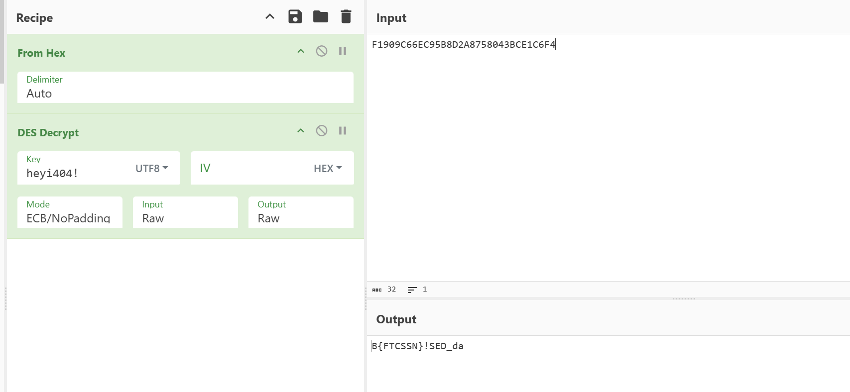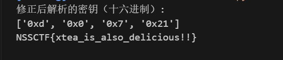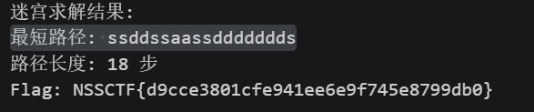 运行出来其中一块,根据题目条件的意思,那就是缺少的就是NSSCTF{}包起来就好了