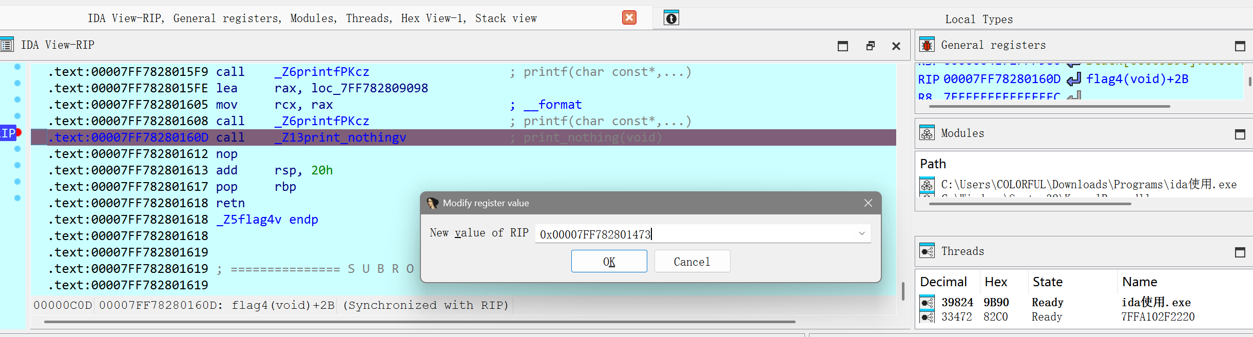 在print_nothing处下断点,将rip的地址改为print_flag4