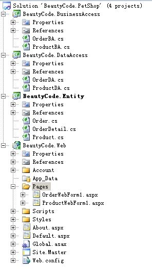 采用了上面的结构之后,如果是前面的情况,product的bug修改完毕之后,发布product相关的dll就可以了,可以进行测试,不影响order部分的使用。也算是项目的OCP(Open-Closed Protocal)原则吧。(请各位原谅我的冒用)