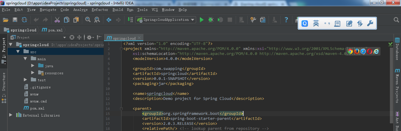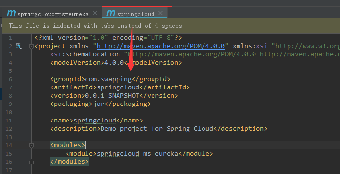 <artifactId>springcloud</artifactId>
