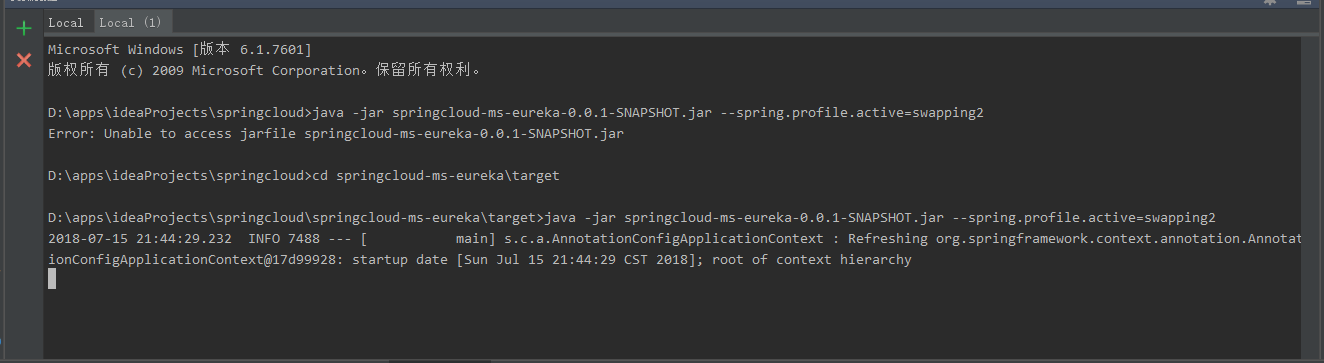 java -jar springcloud-ms-eureka-0.0.1-SNAPSHOT.jar --spring.profiles.active=swapping1