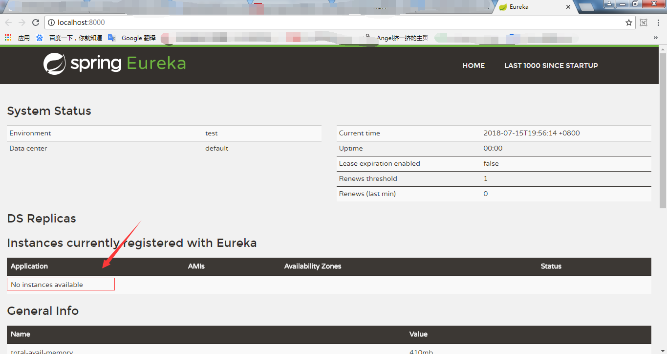 此刻显示 注册中心 中并没有服务注册