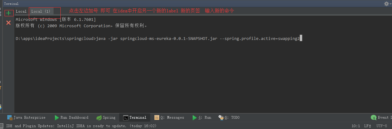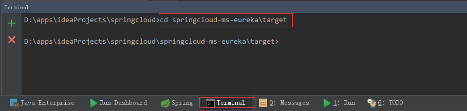 需要先在idea命令窗口走到咱们打包的jar包存放的位置: